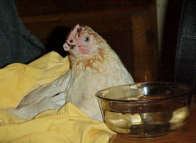 adult white laying hen of her breed, age 8 months...weighs 1.9 kilos)