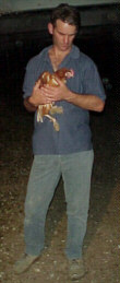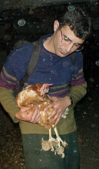 PHOTO 3. Romeo (nutrition tertiary student) cradles rescued hen who