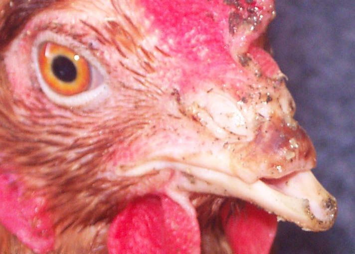 removed to the nostrils (see photo 1 below). Two hens were found near