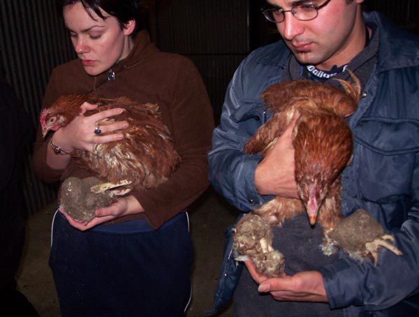6) Romeo and Patty with three bald battery hens taken from PACE