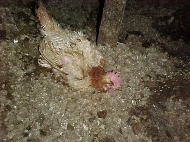cowering on dead bodies on July 5, 2001 in the RSPCA APPROVED Barn-laid