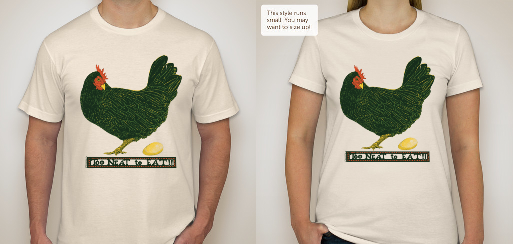 Unisex Size Chart • Women Size Chart “Too Neat to Eat” Rooster T-shirt - $25